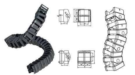 拖鏈還能夠使用不同的固定方法,能夠在提前安裝之時,預留出百分之十到百分之十五的位置,在內置的油管以及電纜內進行自由性的設計,而且還能夠在半彎曲狀態之下不會出現強拉力,能夠保護好氣管,油管,以及電纜管道,直接差距較大,還可以將導線完全分布開,將重量平均分布開,才能夠更好的進行隔離。