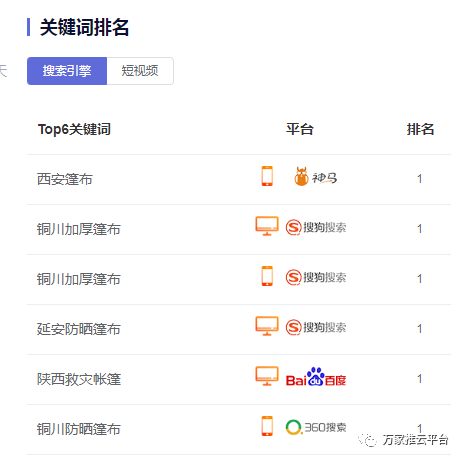 >>>B2B商盟:銅川篷布價位、榆林防曬篷布等關鍵詞均在360搜索引擎平臺首頁展現。